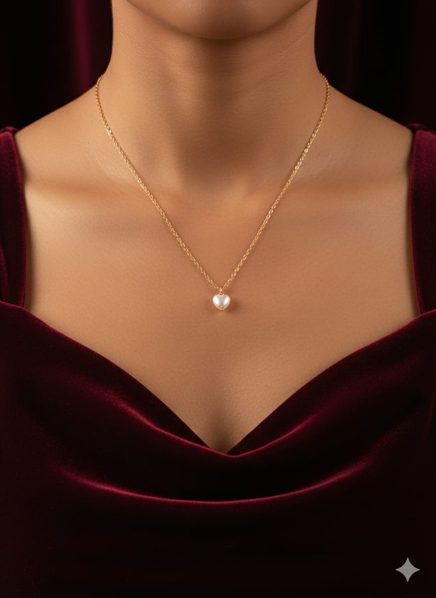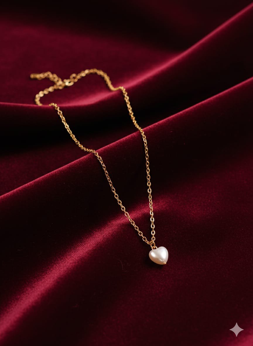 Chic Design: Features a delicate gold chain paired with a beautiful heart-shaped pearl pendant.