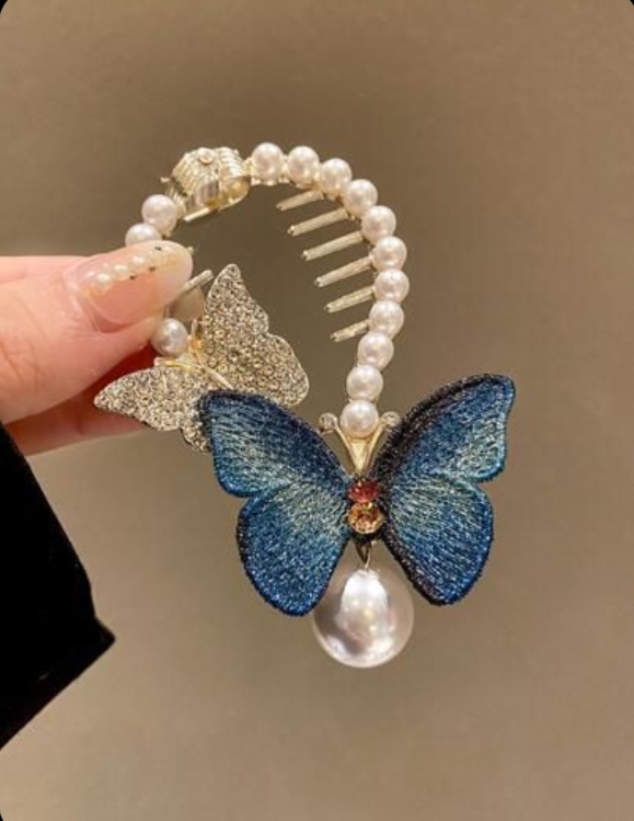Elevate your hairstyle with this stunning Pearl Butterfly Hair Bun Buckle Hairpin, designed to combine elegance with a pop of vibrant color. Featuring two exquisite butterflies — one in shimmering silver and the other in a beautiful ombré blend of deep purple and ocean blue — this accessory adds a glamorous and eye-catching statement to any bun or updo. The arc is delicately adorned with lustrous white pearls, while a large dangling pearl charm adds graceful movement with every turn of your head. Crafted from premium-quality materials, it’s lightweight, comfortable, and secures your hair firmly without causing damage. Perfect for weddings, parties, festive events, or to give your everyday look a chic upgrade, this hairpin is a must-have for those who love colorful elegance.