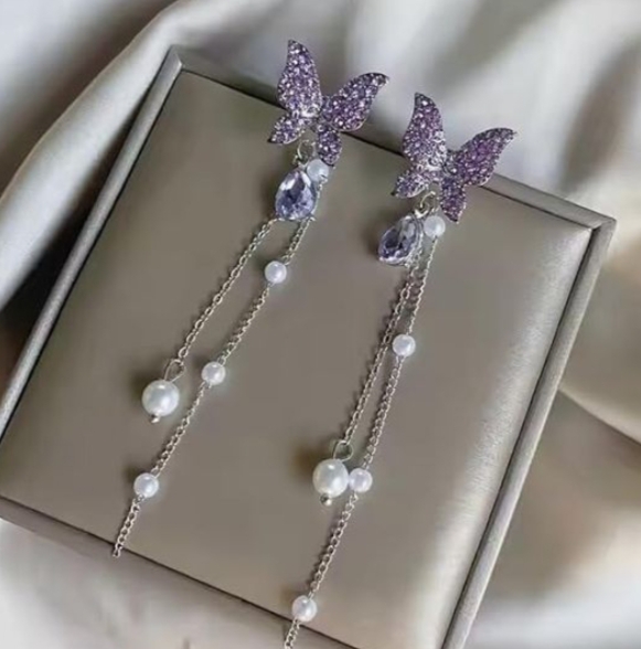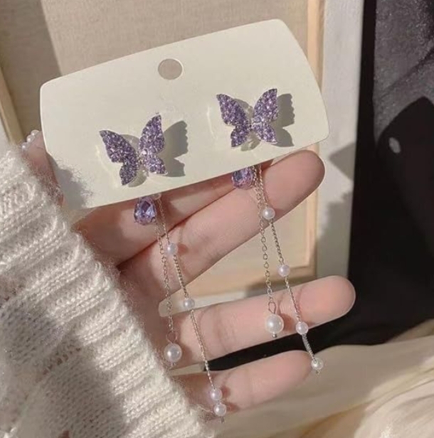 Elegant purple crystal butterfly danglers that add sparkle and charm to any outfit. Lightweight, stylish, and perfect for all occasions.