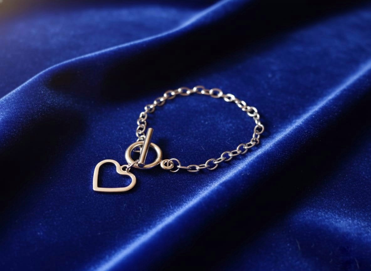 Elevate your accessory game with this Elegant Silver-Plated Heart Charm Toggle Bracelet. Designed for the modern woman, this piece combines a minimalist aesthetic with a touch of romantic flair, making it a versatile addition to any jewelry collection Timeless Aesthetic: The combination of the sleek silver chain and the heart charm offers a minimalist yet “cool” look that pairs well with any outfit.